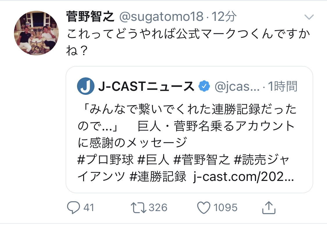 【悲報】菅野のTwitter、ネットニュースに偽物扱いされる