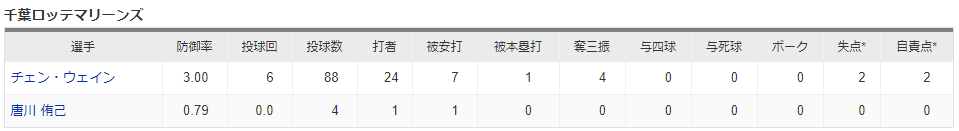 【ロッテ】チェン・ウェイン、9年ぶりのNPB登板は6回2失点!白星はならず