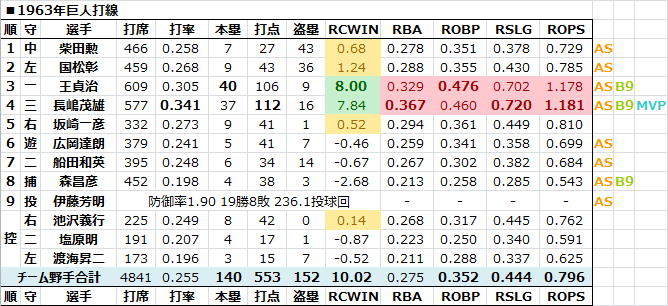 3(一) 王貞治 4(三) 長嶋茂雄←これ普通逆じゃないの?