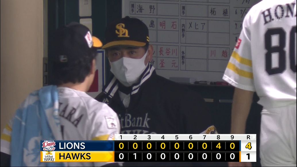 牧原の今季1号ソロで先制した1点を東浜の快投で守ってきたが、八回、モイネロが3つの四球で満塁としてしまう。ここで岩崎に投手は交代したが、迎えたのはNPB最多の通算満塁本塁打数を誇る中村。カウント2-1から左中間席へ豪快な一発を放り込まれた。これが中村の通算21本目の満塁本塁打となった。