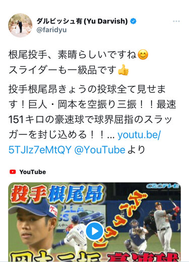 根尾、ダルビッシュに誉められる。