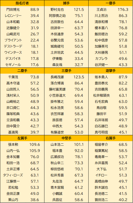 【野球】ポジション別WAR歴代トップ10を発表するでwww