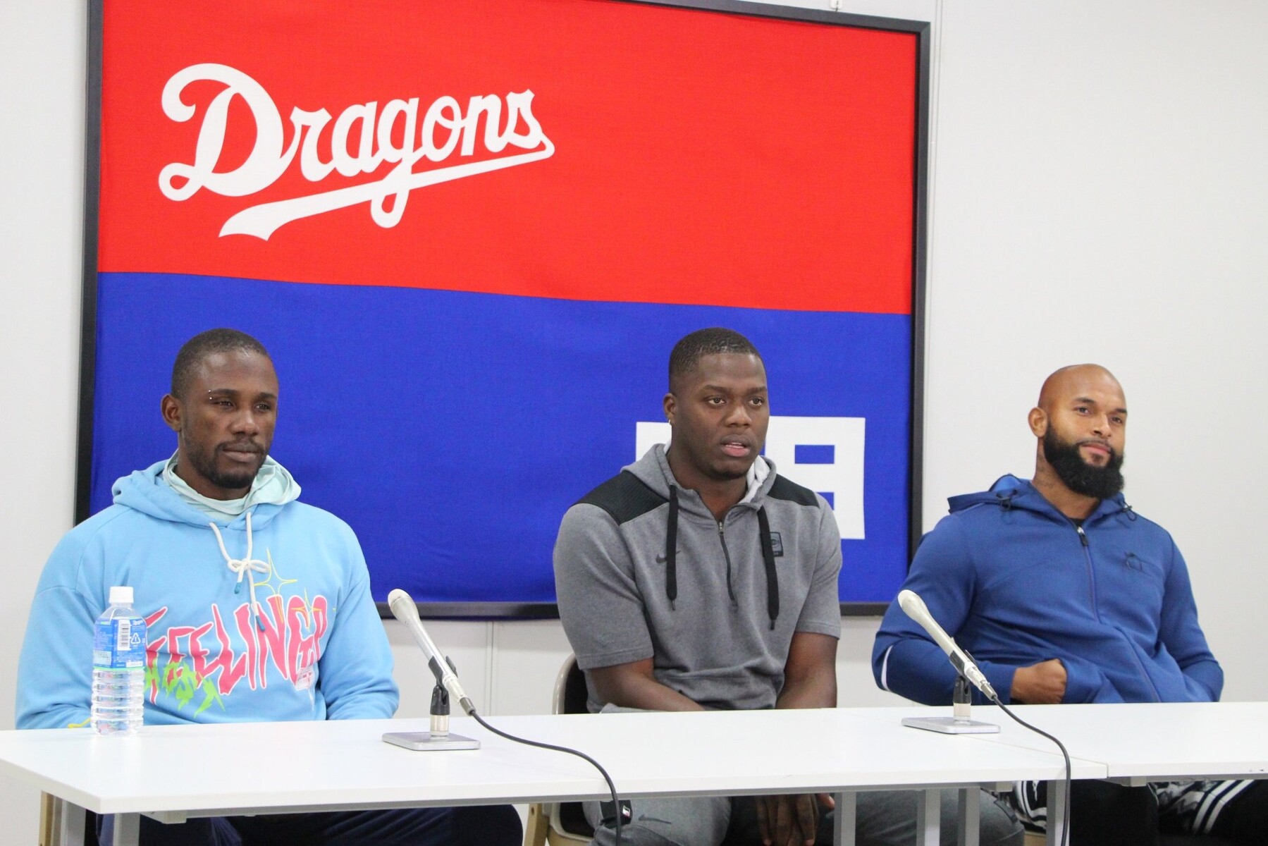 中日の新外国人入団会見、全員パーカーwww