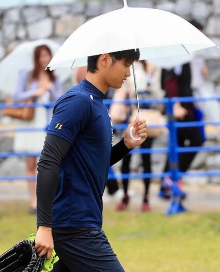 傘小さくね?大谷翔平さんがデカいの?