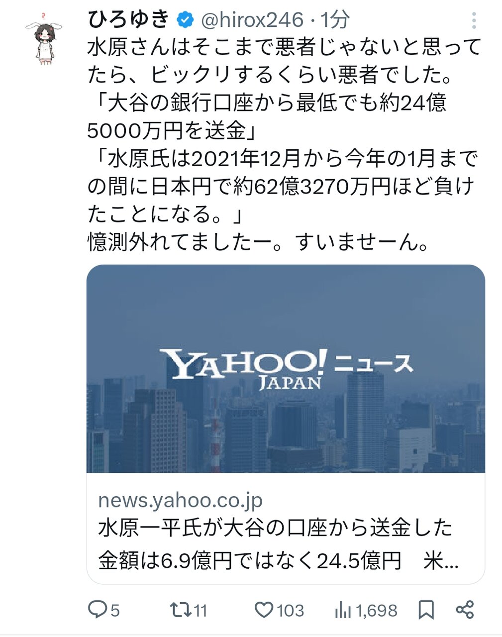 【朗報】論破王ひろき、大谷翔平水原一平事件に関して謝罪