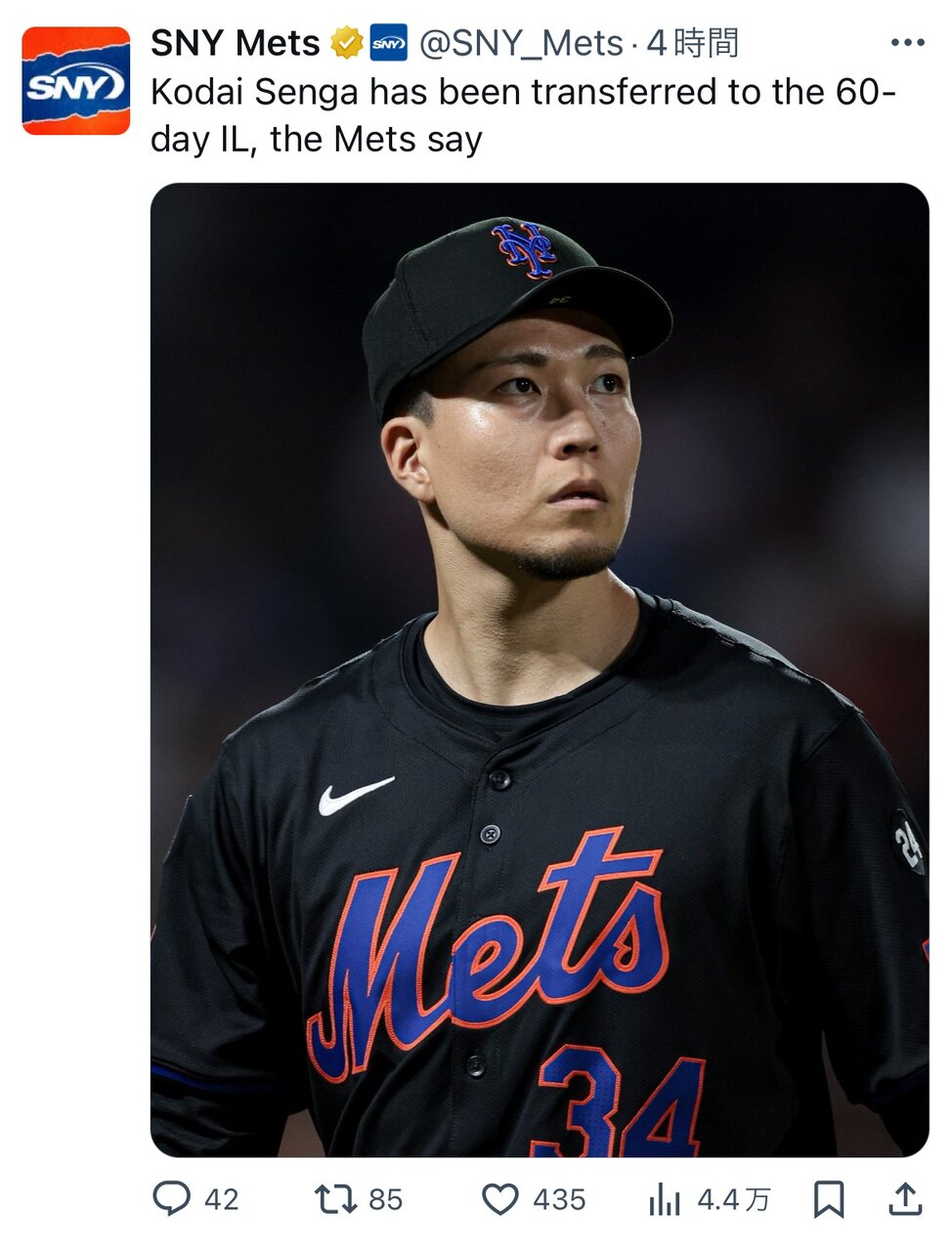 【悲報】千賀滉大さん、60日間の故障者リスト入り
