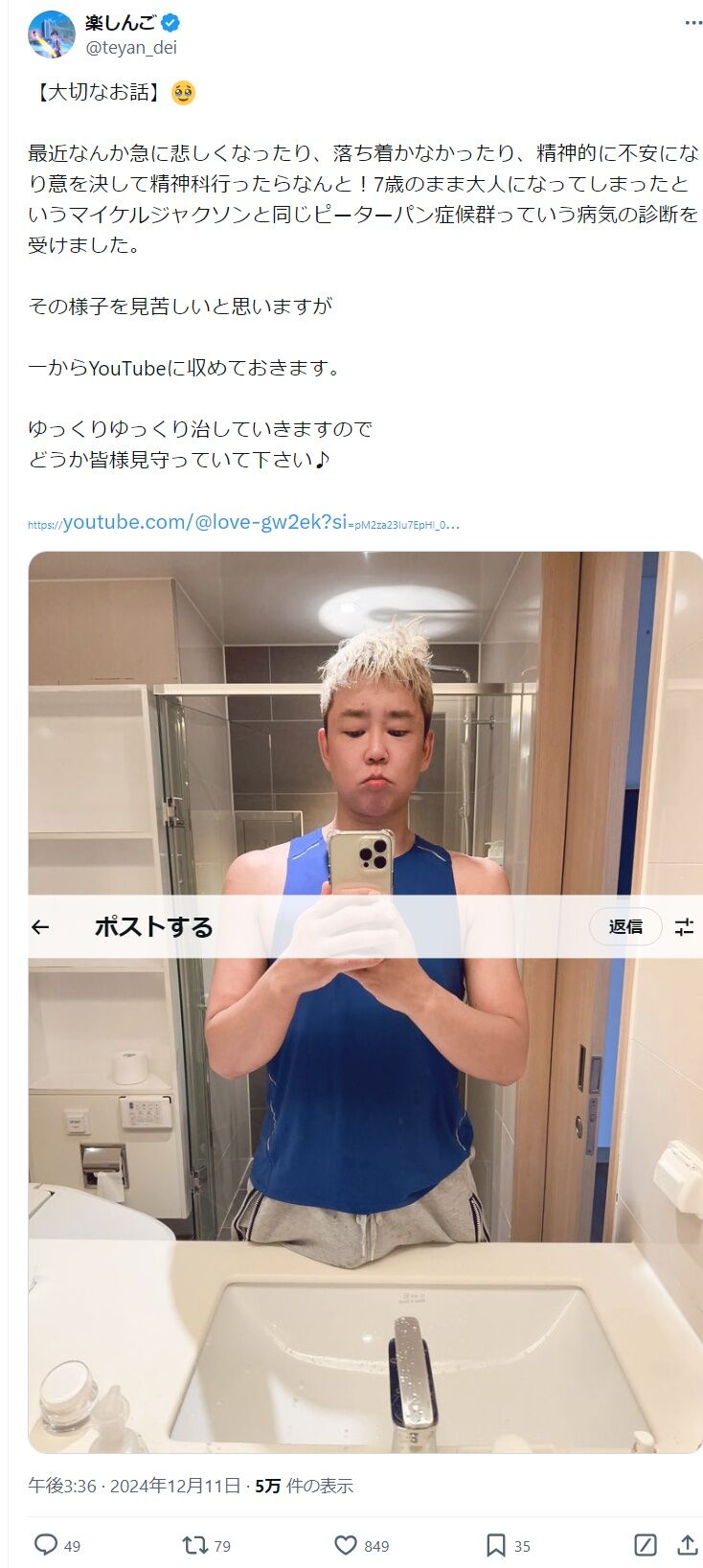 楽しんごさん、精神科で精神病の診断を受ける