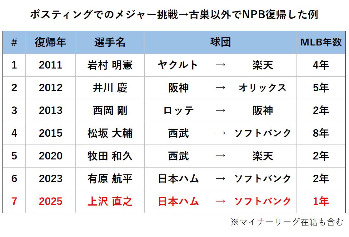 ポスティングでメジャー行って別のNPB球団に復帰した選手、地味にヤバいのが多い