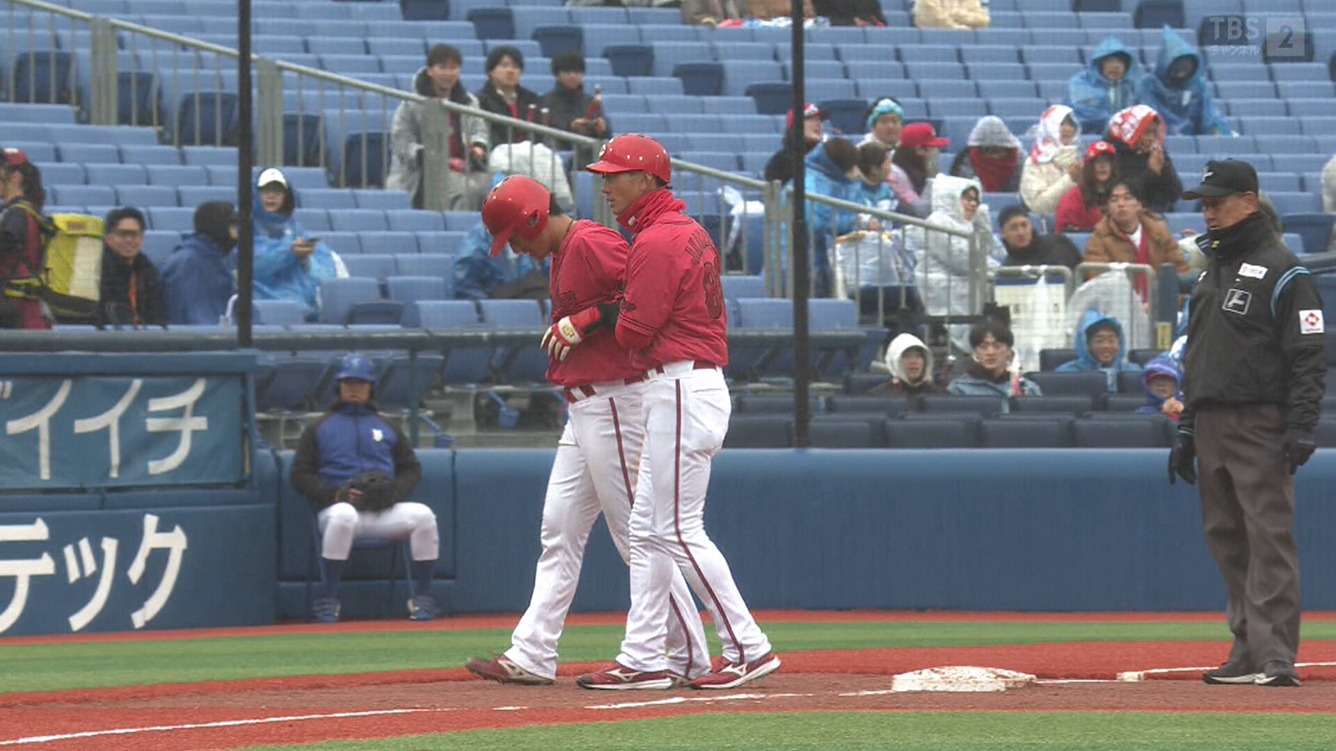 広島・ドラ1佐々木泰、走塁時に左ふともも裏を痛めて交代