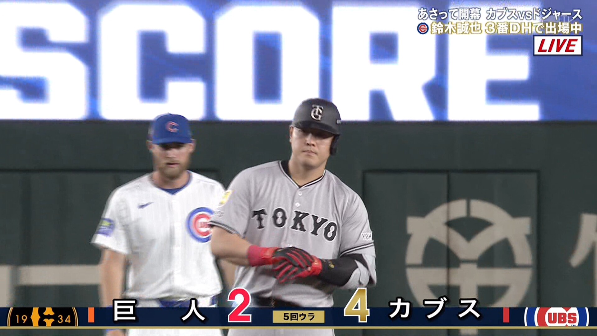巨人、反撃開始! 岡本が98マイルを2点タイムリーツーベース