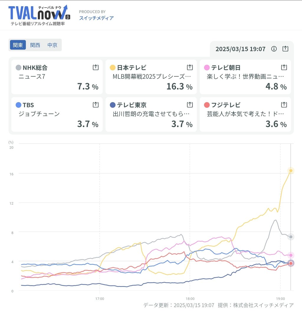 大谷翔平の打席の視聴率