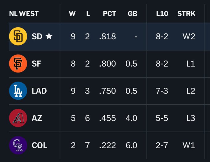 ドジャースさん、地区3位
