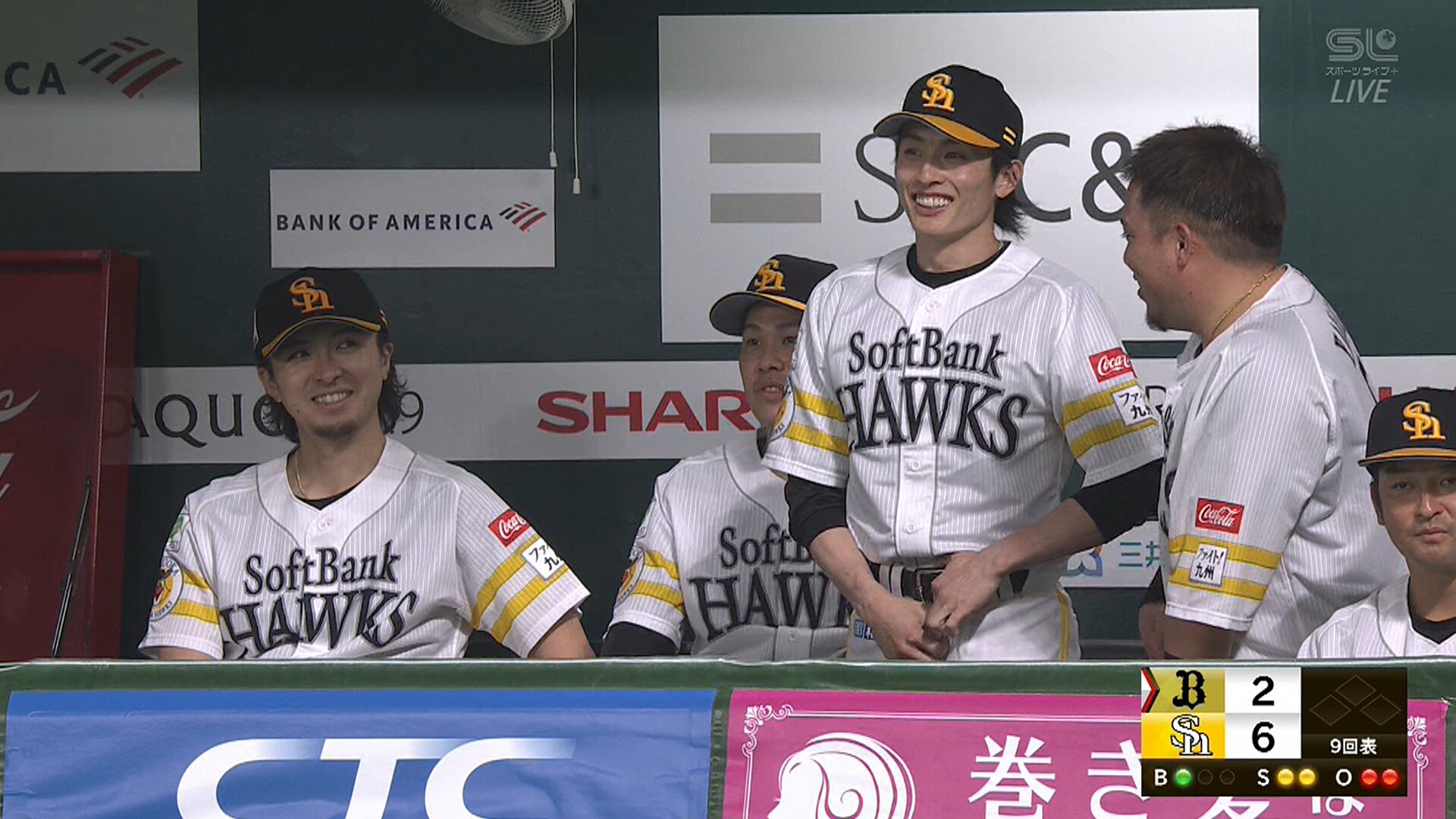 周東、膝付近への死球で交代… 心配されるもベンチで笑顔を見せる