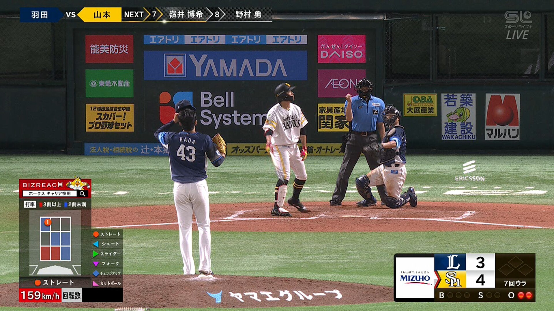 - ストライクが入る時の羽田はメジャー級