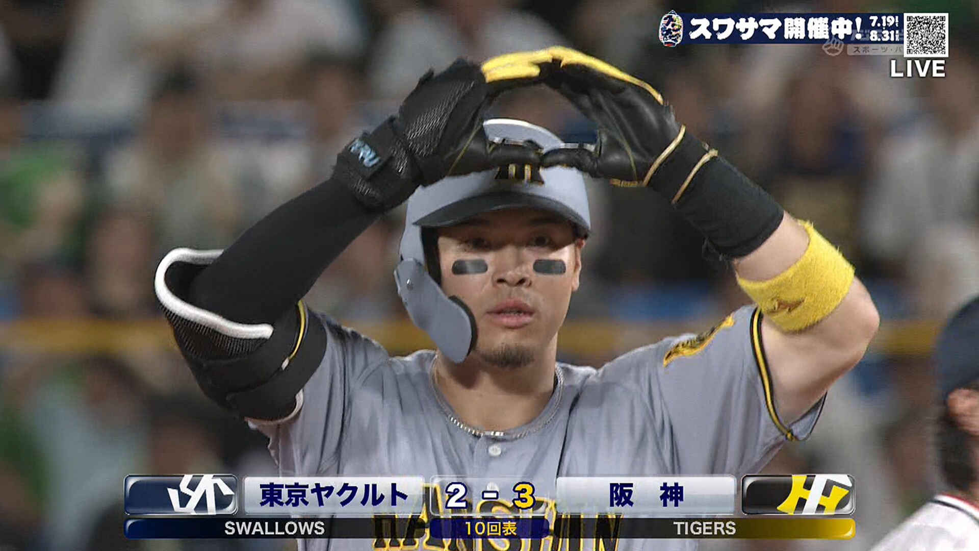 佐藤輝明の打球、グングン伸びてライトのグラブを弾く決勝打!