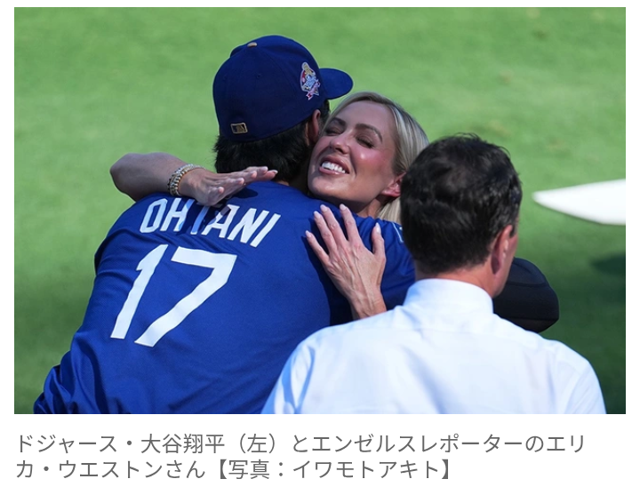 大谷翔平と再会した“お馴染み美女” かつての本拠地でがっちりハグ 笑顔で記念撮影も