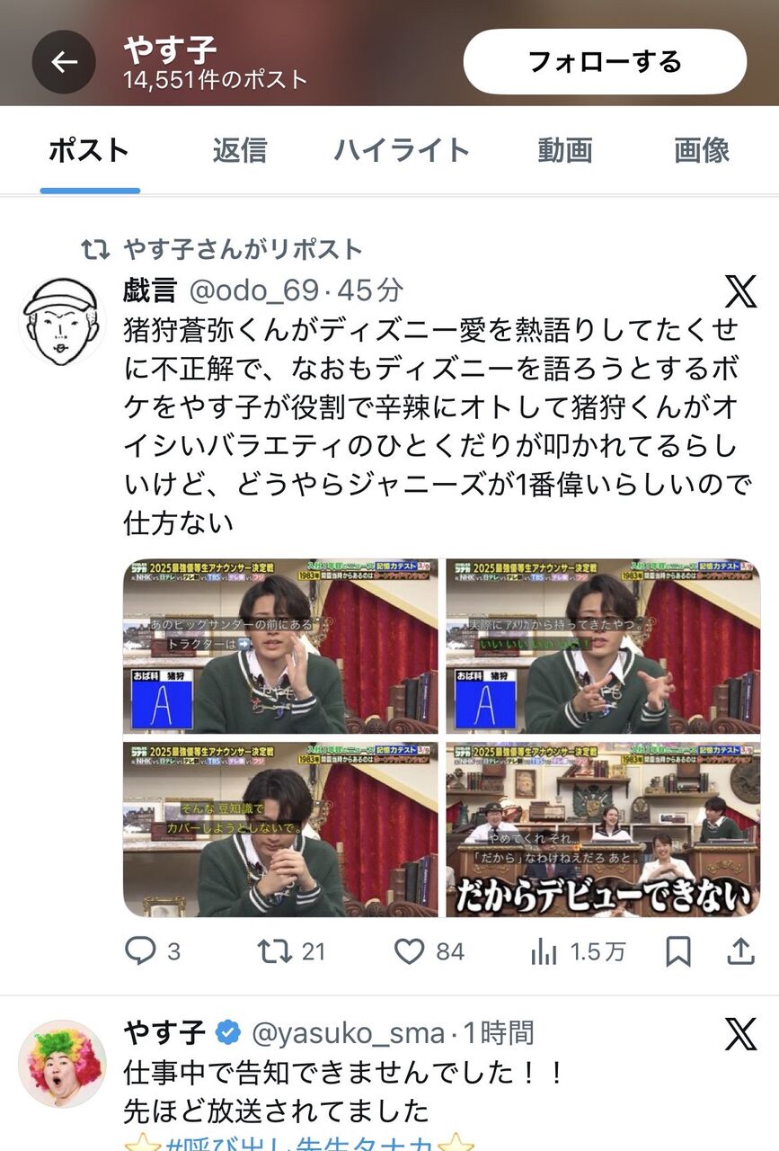 【悲報】やす子さん、ジャニオタを敵にまわし大炎上するwwwwwwwwwwwww
