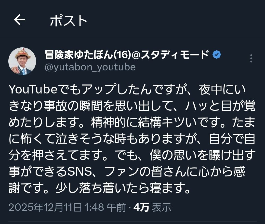 【悲報】ゆたぼん、人身事故に遭い見舞金乞食