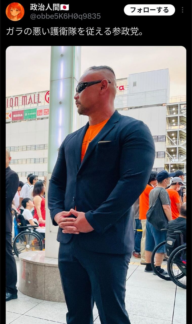 【悲報】参政党のボディーガード、ガチで怖い。お前らの想像の500倍怖い