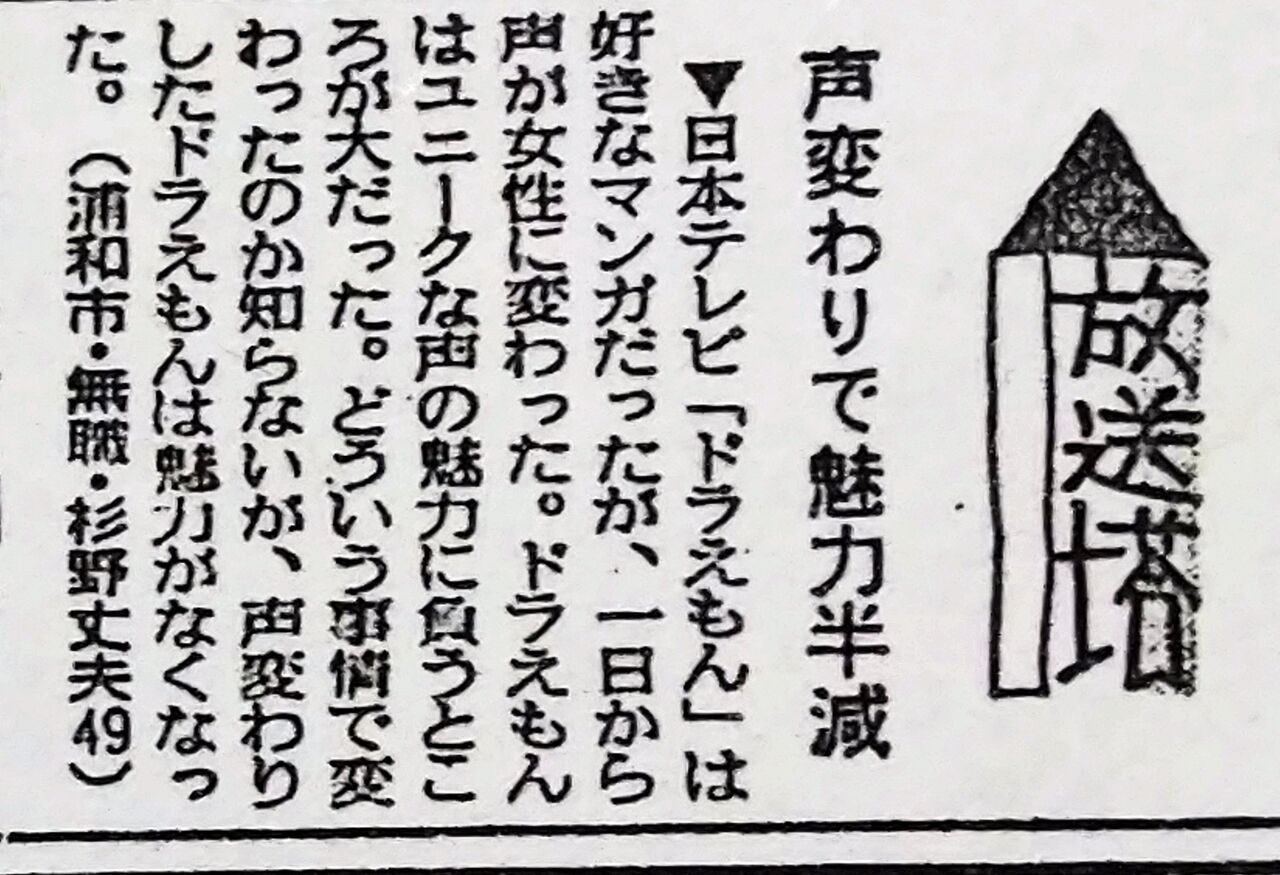 新聞の古さから見てドクターヘルから大山のぶ代に変わった頃ですかね