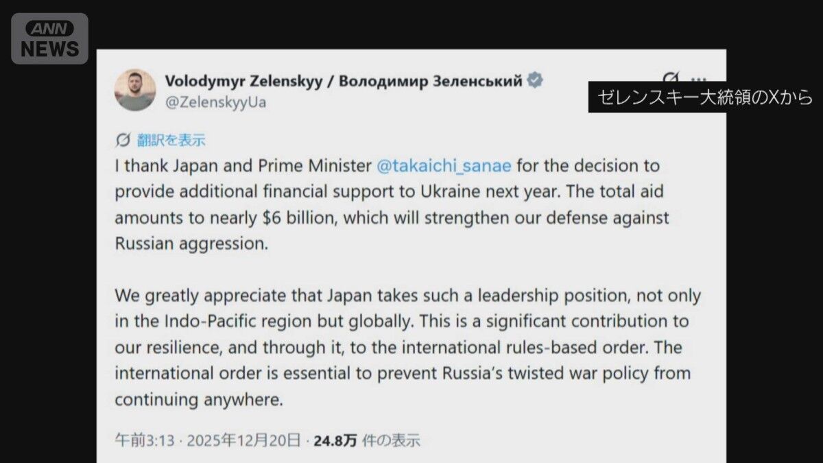 ゼレンスキー氏「高市総理に感謝」 9000億円超の支援は「国際秩序への貢献」