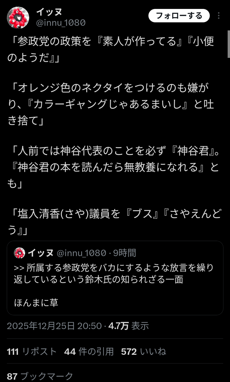 【悲報】参政党議員さん、参政党を馬鹿にしてしまう