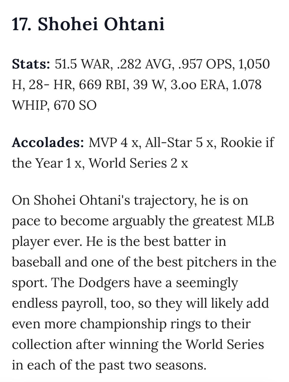 17位大谷翔平