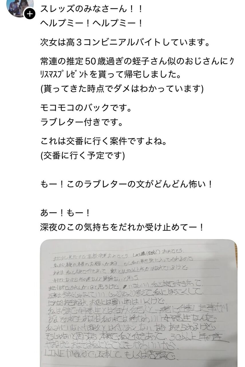 【画像】コンビニバイトのJKにラブレターを送ったオッサン 無事晒される