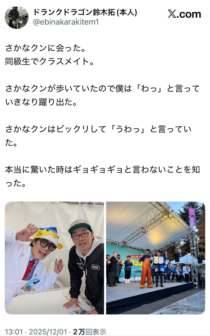 【悲報】さかなクン、キャラを作ってることを同級生が暴露「ギョギョギョなんて言わない」