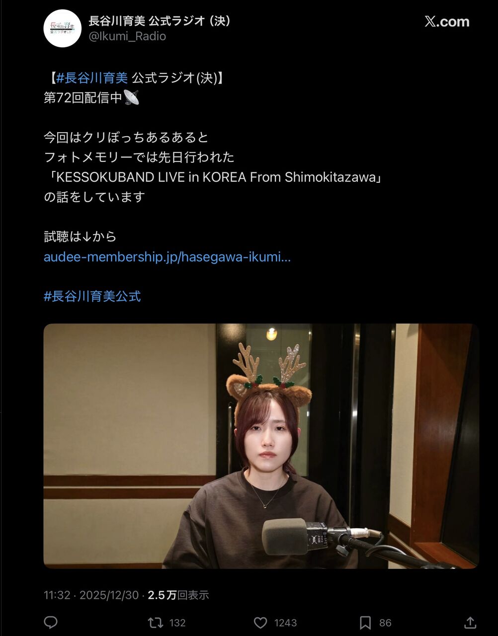 【朗報】人気声優・長谷川育美、クリぼっちを報告wwwwwwww