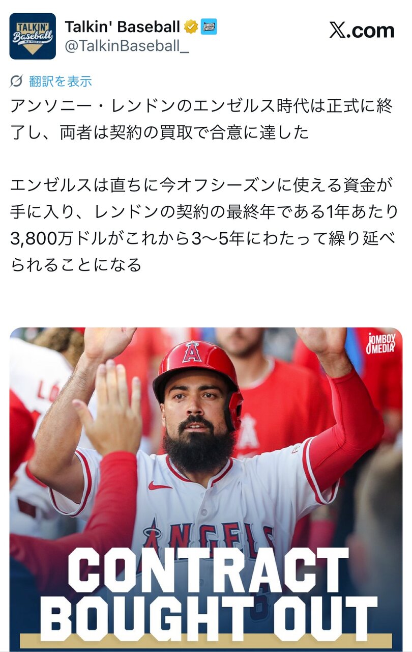 アンソニー・レンドンさん、エンゼルスとの契約を満了で合意!!!!!!