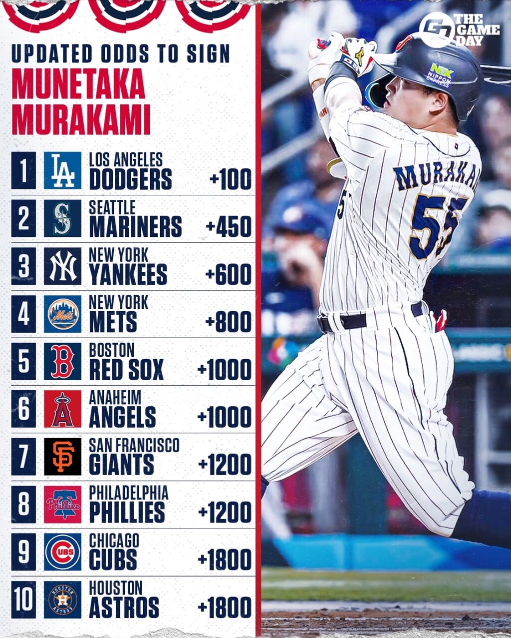 【画像】村上宗隆さんのシカホワ決定前、ポスティング開始時点のチーム別オッズがこちらwwwwww