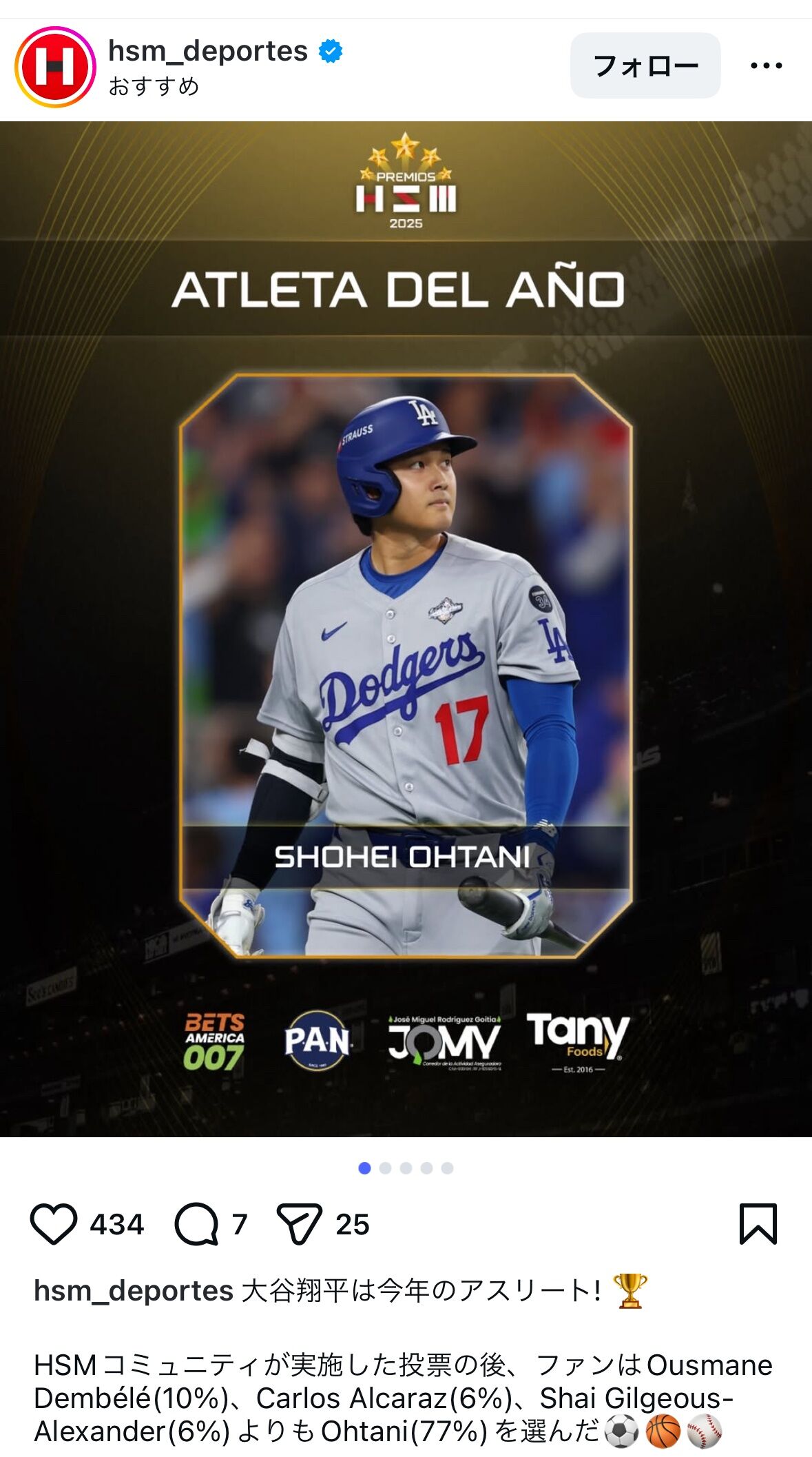賞の規模は置いといて、日米以外でも野球界の大谷が知れ渡られてるのが凄いと思う