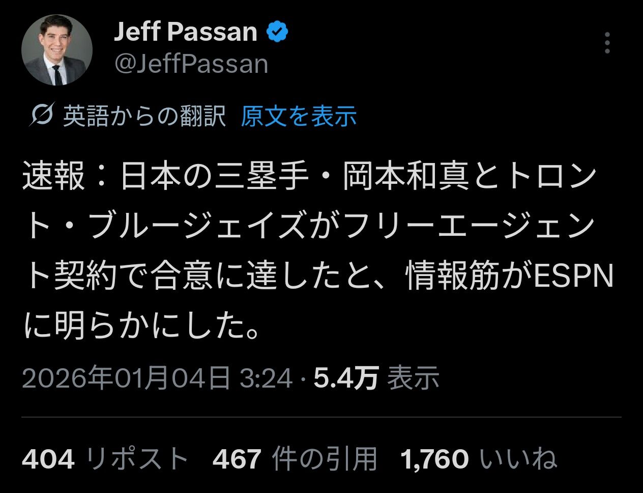 岡本和真、ブルージェイズと合意wwwwwwwwwwwwww