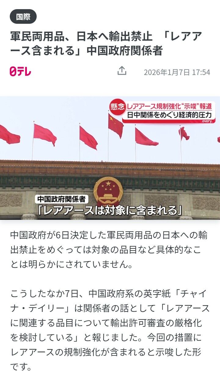【悲報】中国さん、マジで日本へのレアアースの輸出禁止に動いてしまうwww