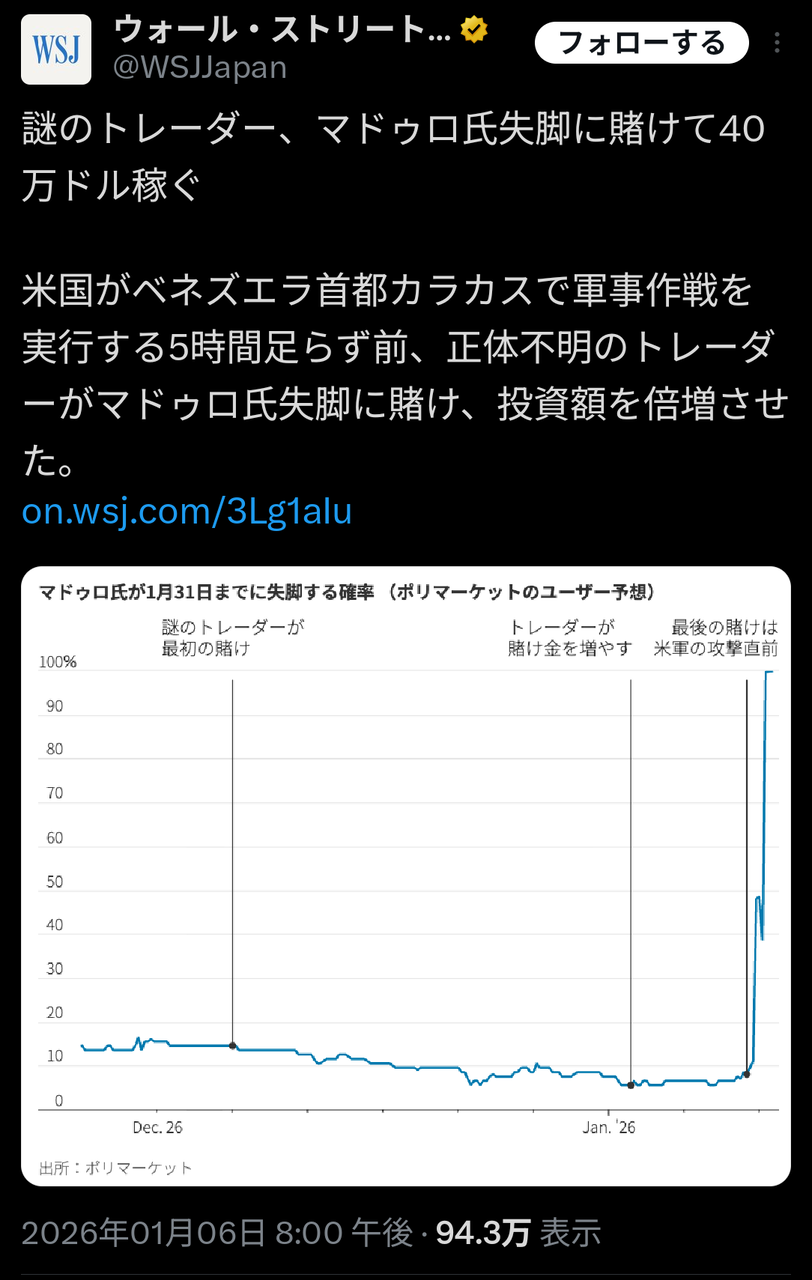 【画像】謎のトレーダー、マドロ大統領の拘束4時間前にマドロ失脚に大金ベットして7000万円稼ぐ