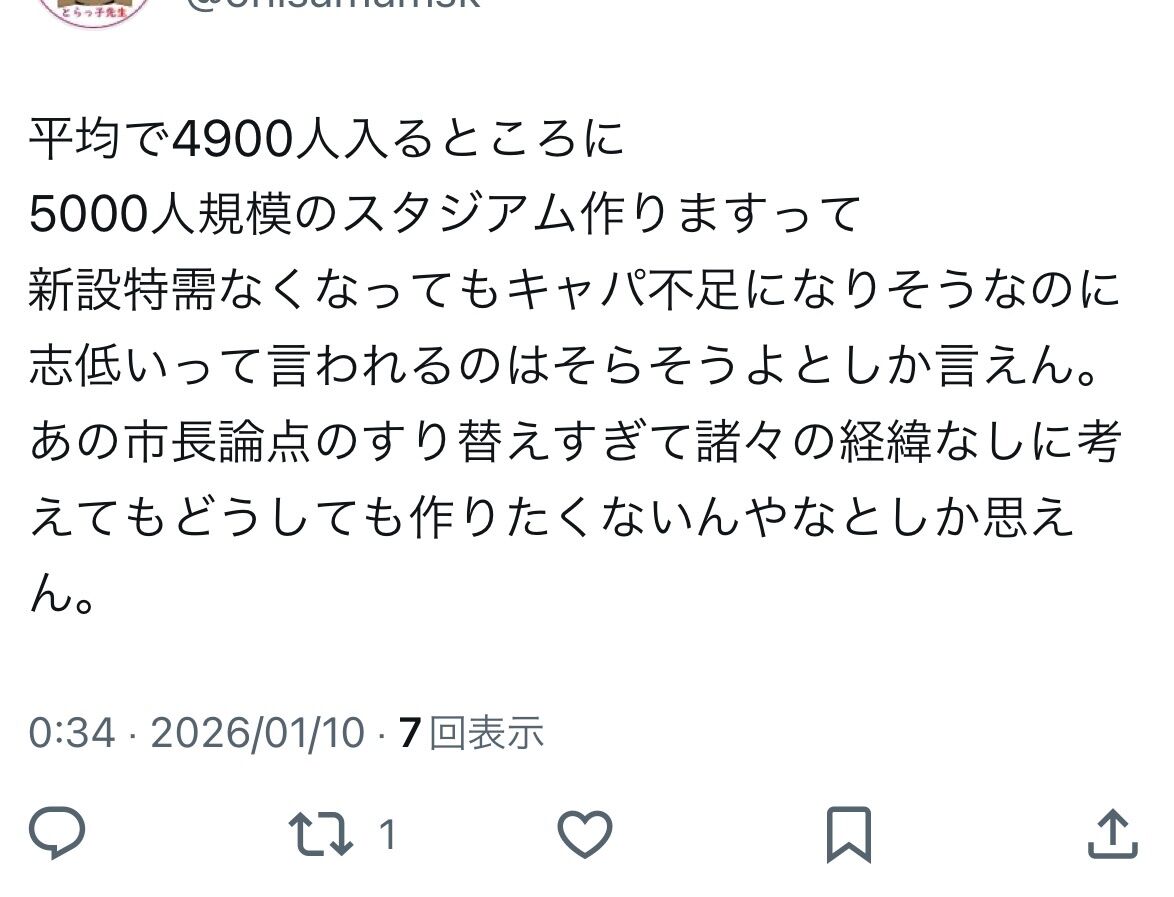 こいつ曰く、市長は話の論点をすり替えてどうしてもスタジアムを作りたくないって意見が見え見えらしい