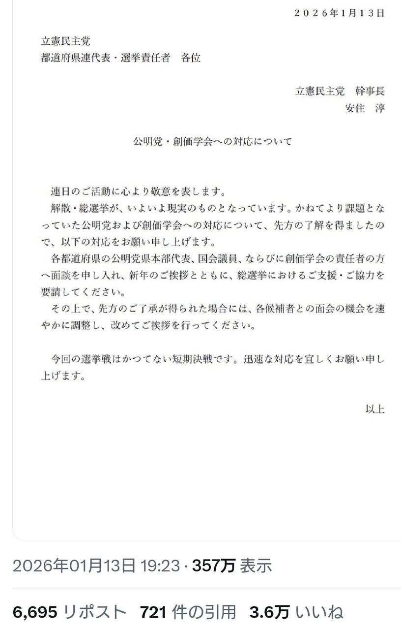 【朗報】立憲共産党に公明党が合流!最強形態へ!
