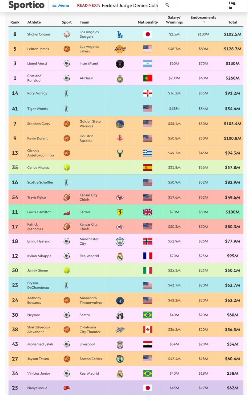 【朗報】大谷翔平さん、レブロンやメッシを抜いてスポンサー収入世界1位の1億ドルに到達