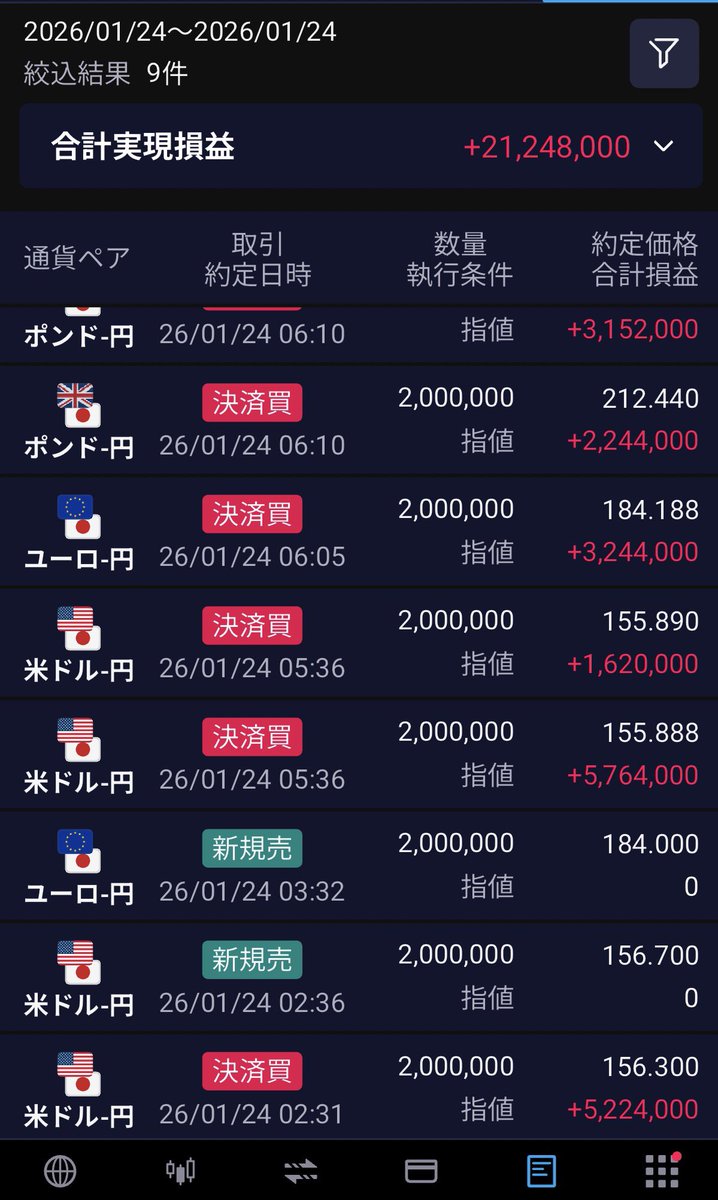 ここ数日、介入?がきそうなタイミングで何度も円を買いにいったことと、きてからどうしたらいいかも頭に入れていたので、慌てず夜まで待って良いトレードできました👌