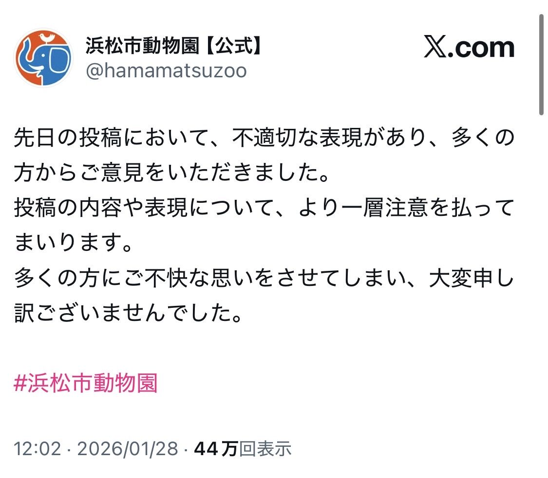 【画像】浜松市動物園「白と黒の動物はパンダだけじゃありません シマウマもいますよ」→謝罪へ………
