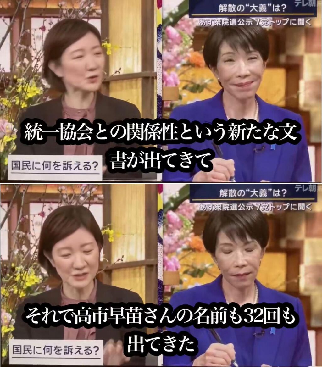 高市「統一教会文書の話題やめろ、名誉毀損だぞ」←生放送で台本にない話題をふられてブチ切れ