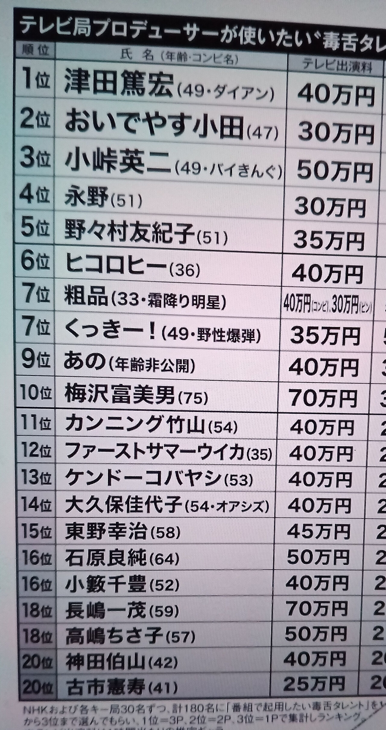梅沢とか一茂とか見たくない奴らが高いとかアホすぎる