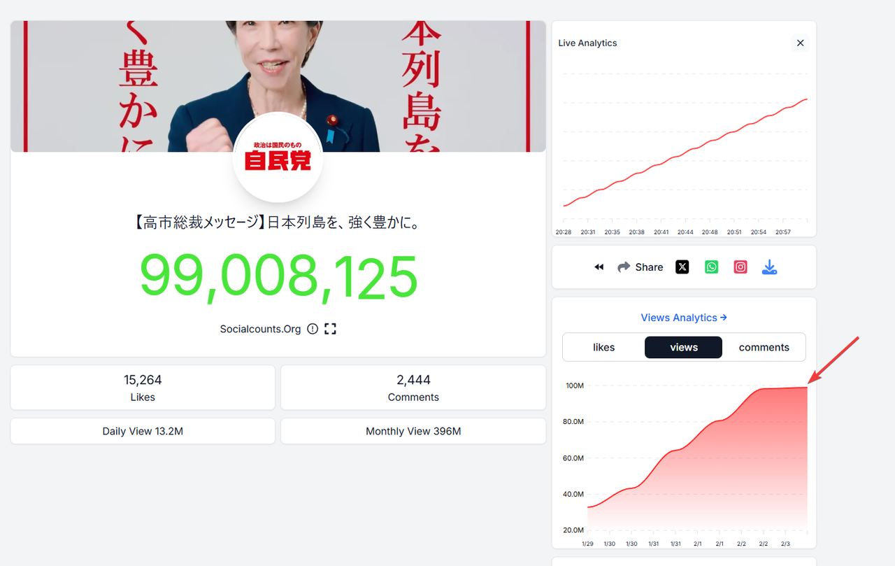 「高市総裁メッセージ」日本のYouTube動画史上最速の1億再生を突破し話題に!!!!!!!!!