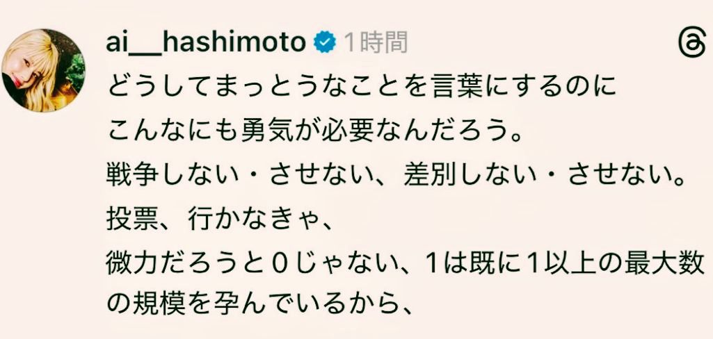 【速報】朝ドラ出演女優、戦争反対の立場を示す「選挙は推し活ではありません」