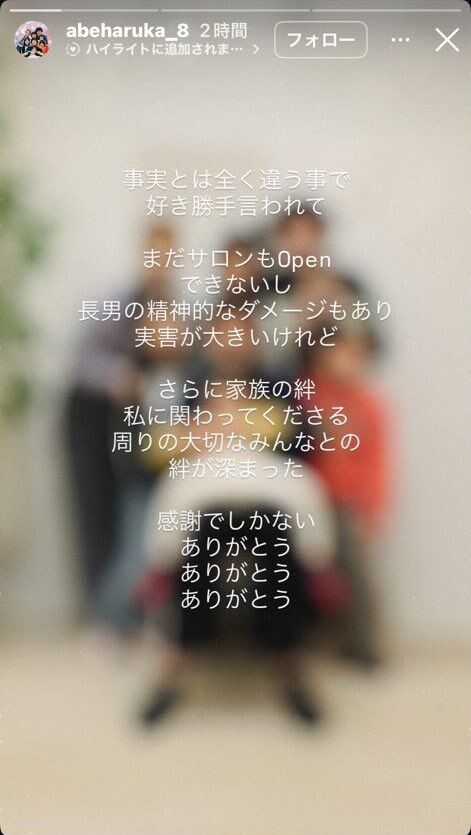 現在、家族や未成年の子どもたちに関する情報が、事実と異なる形で拡散されていることを確認しております。特に、未成年の子どもに関する個人情報の拡散や、憶測に基づく誹謗中傷につきましては、家族として非常に心を痛めており、強い危機感を抱いております。