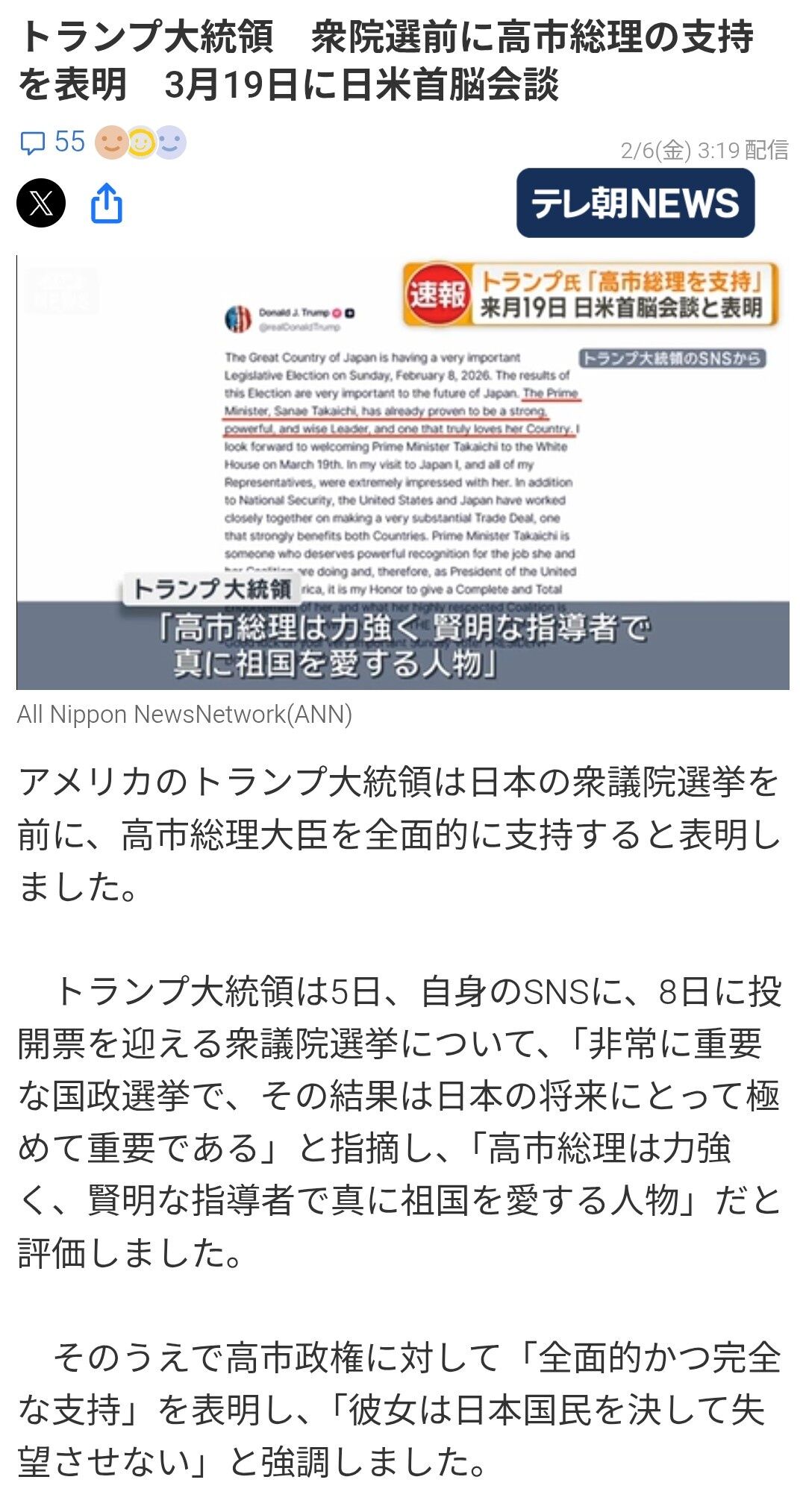 【朗報】トランプおやびん、高市早苗を全面支持してしまうwww