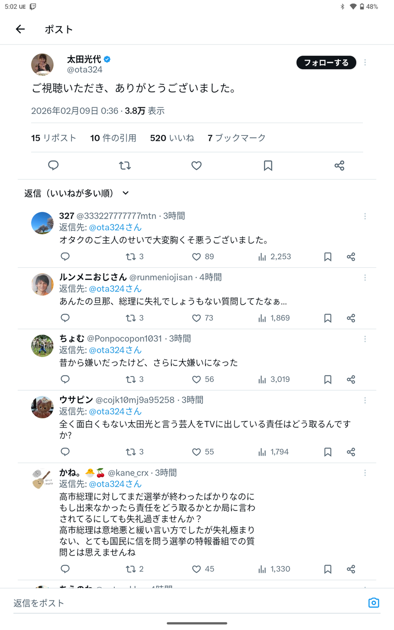 【悲報】普通の日本人、高市早苗を怒らせた太田光にブチギレて逮捕を要求wwww