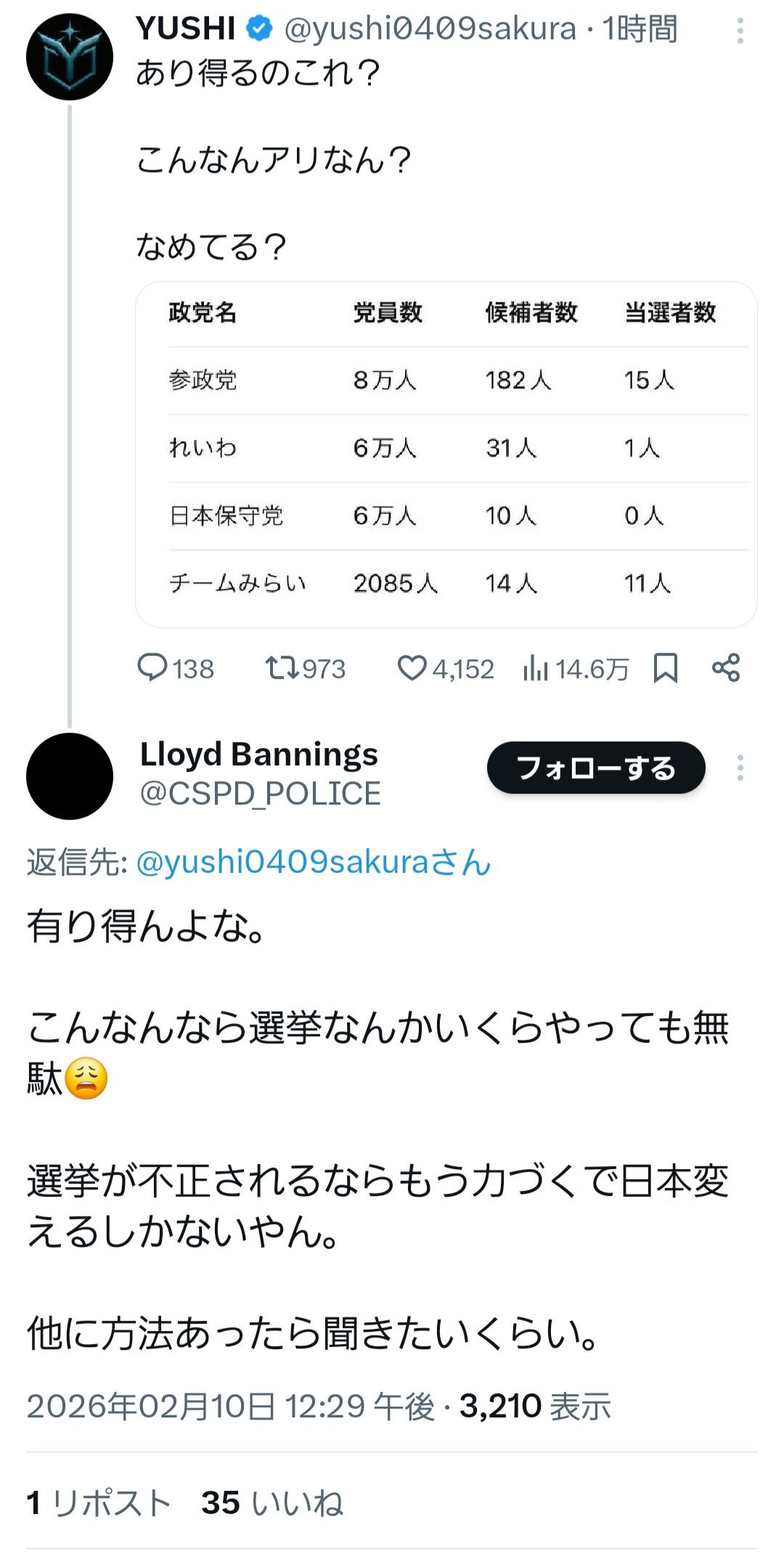【悲報】参政党支持者「チームみらいの得票数がおかしい!不正選挙だ!」