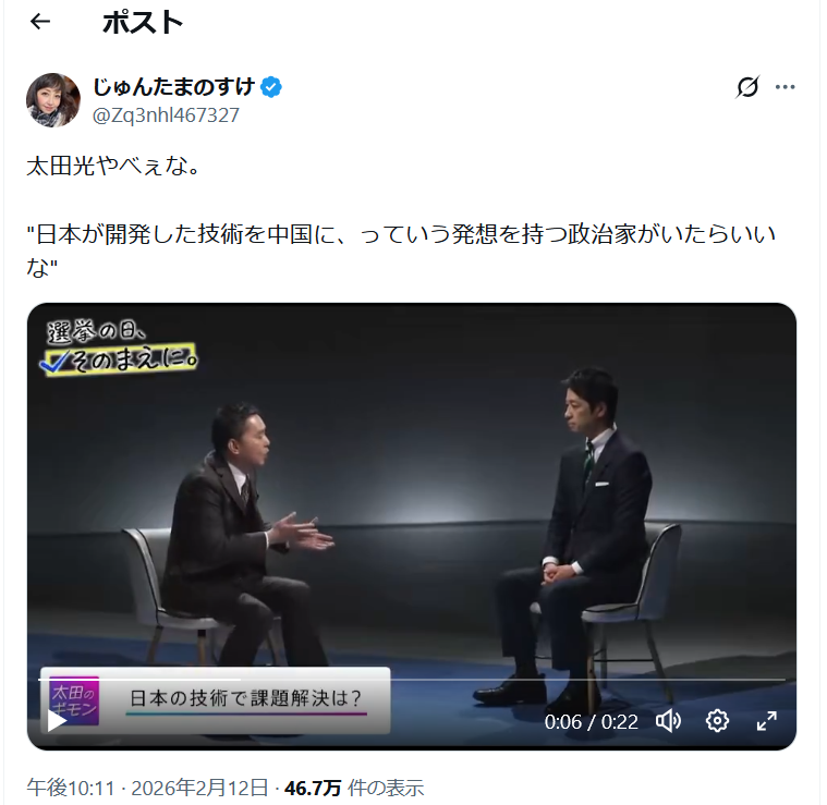 「日本の技術を中国に提供する政治家がいたらいいな」という発言が掘られた模様